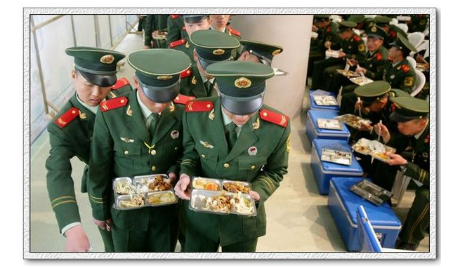 上海世博會中武警戰(zhàn)士使用印有“愛邦”商標的鋁箔餐盒用餐